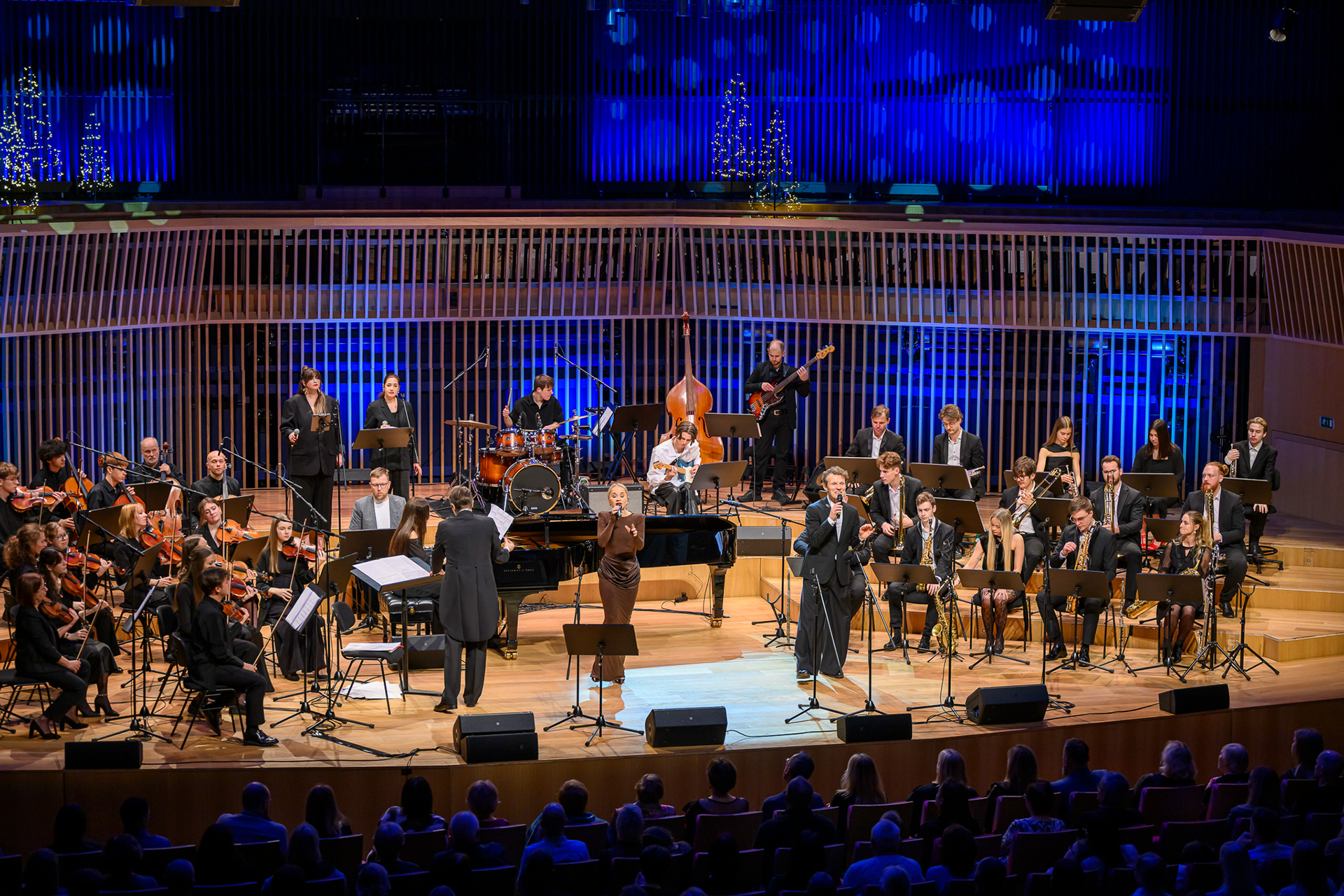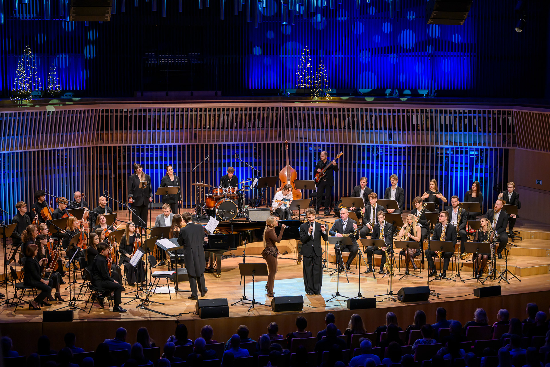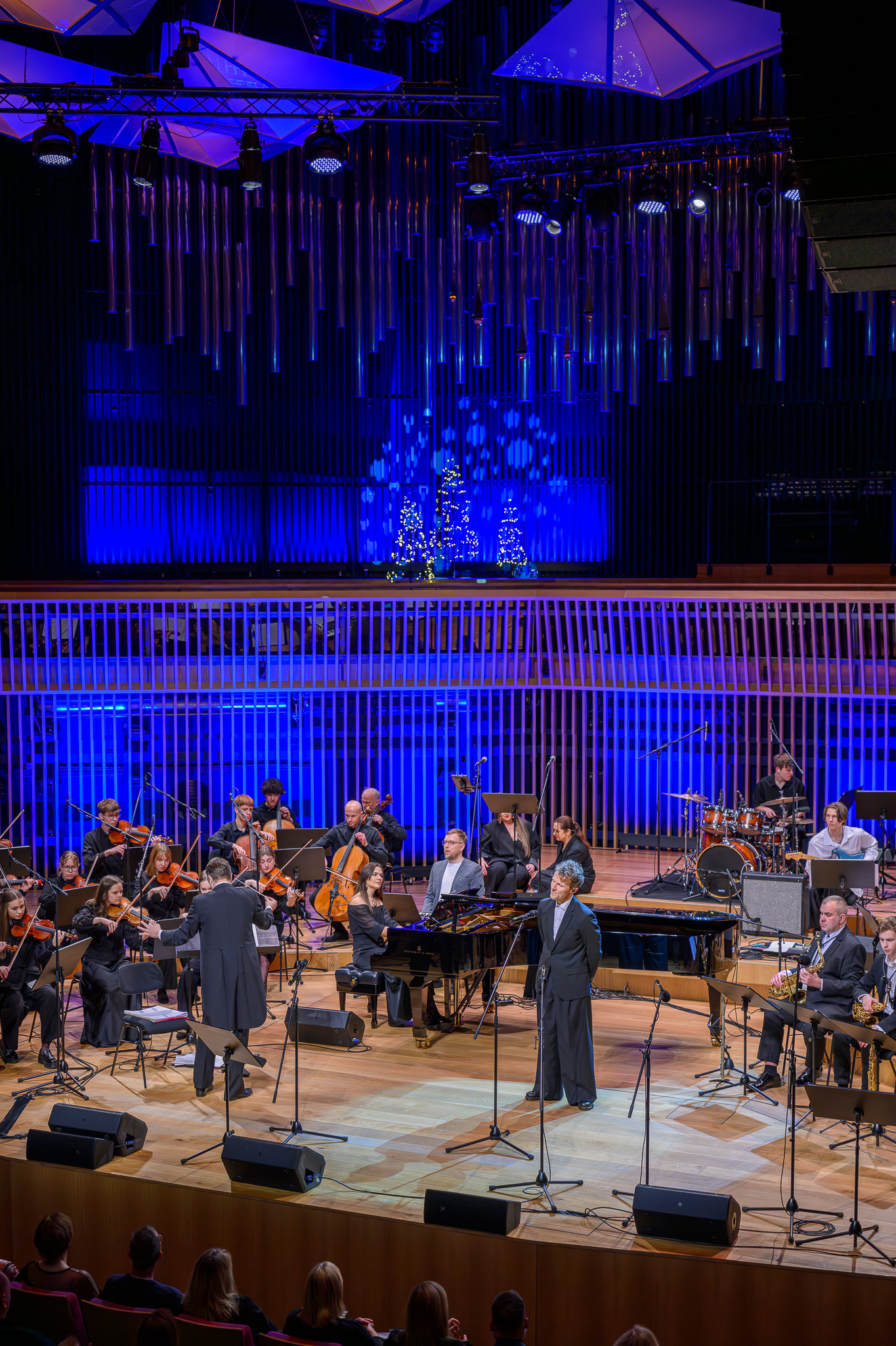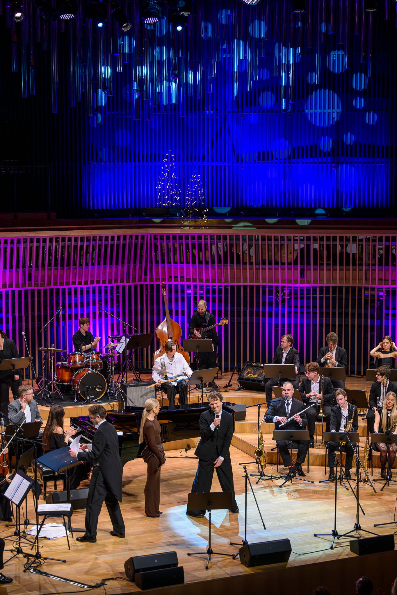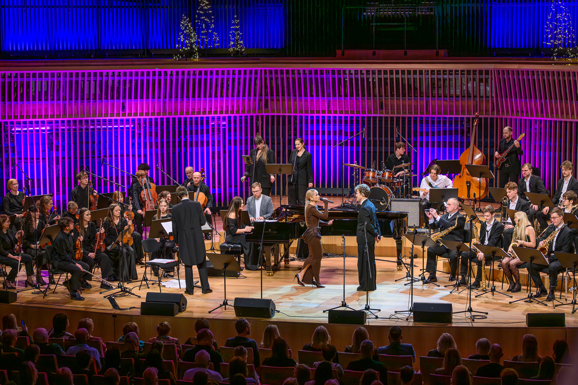 Ieskats koncertā “Nākat iekšā, Ziemassvētki!” koncertzālē “Latvija”. Piedalījās: Aija Andrejeva, Jānis Aišpurs, Ventspils bigbends, Ventspils kamerorķestris. Mākslinieciskais vadītājs Renārs Lācis, diriģents Aigars Meri.