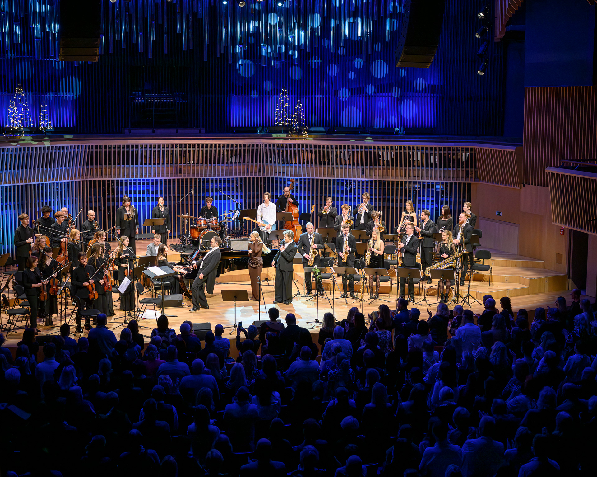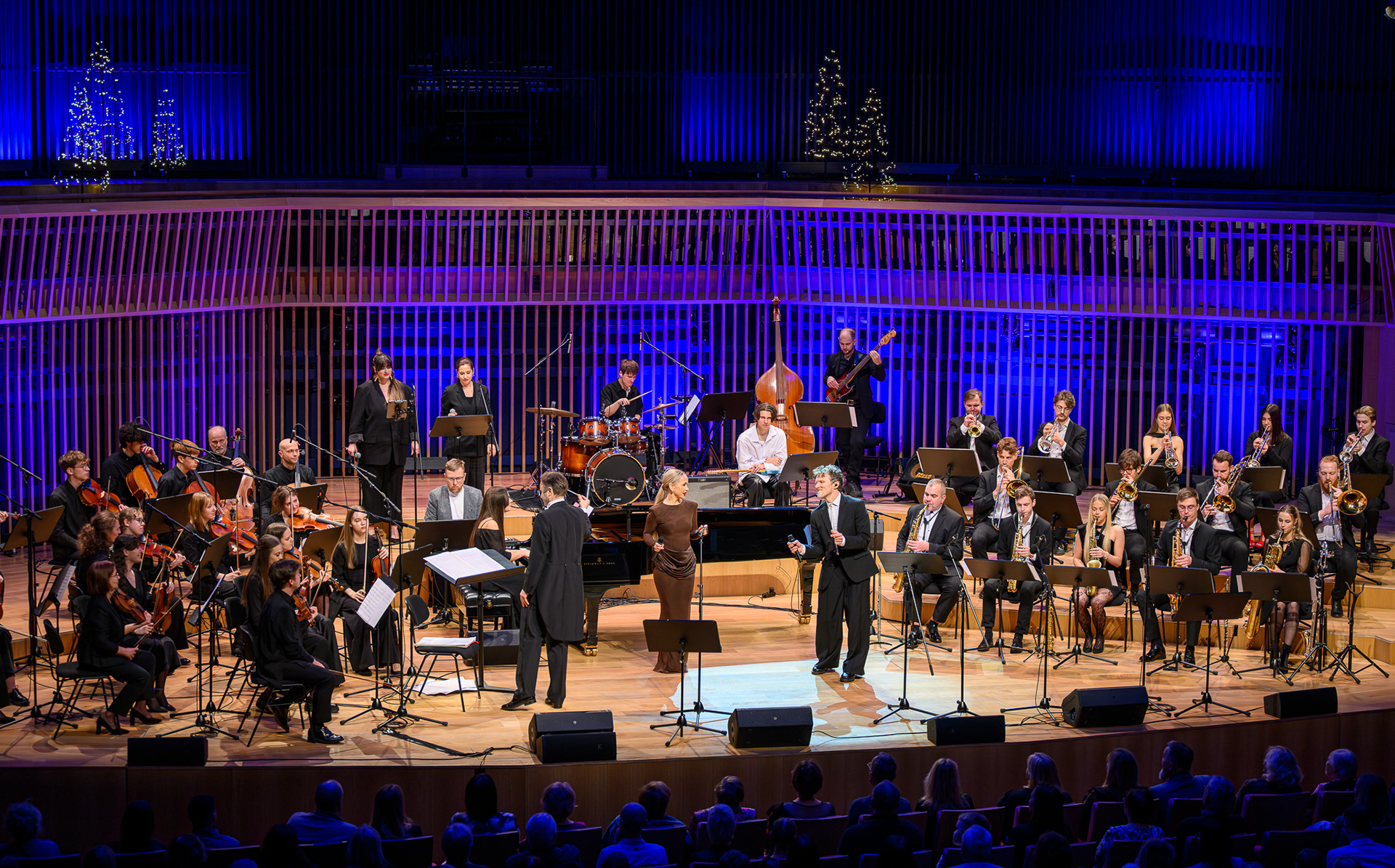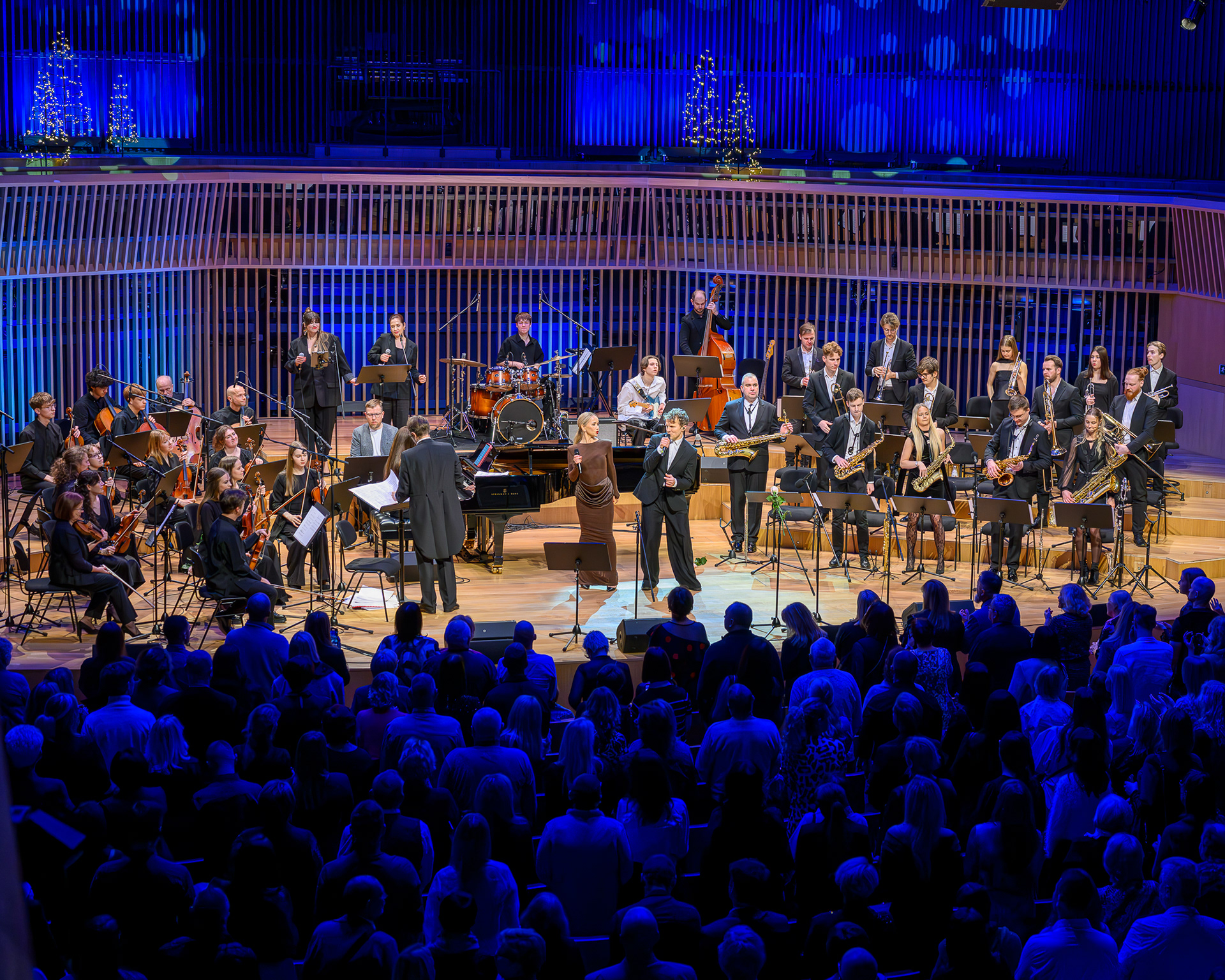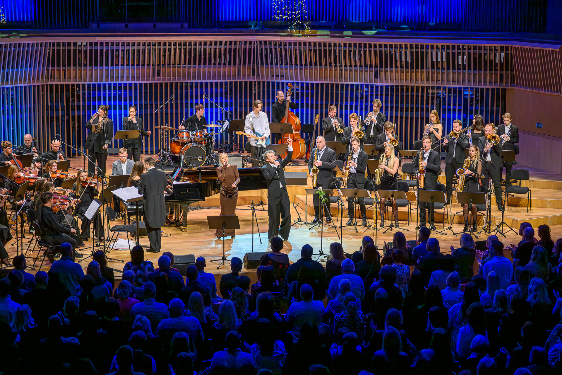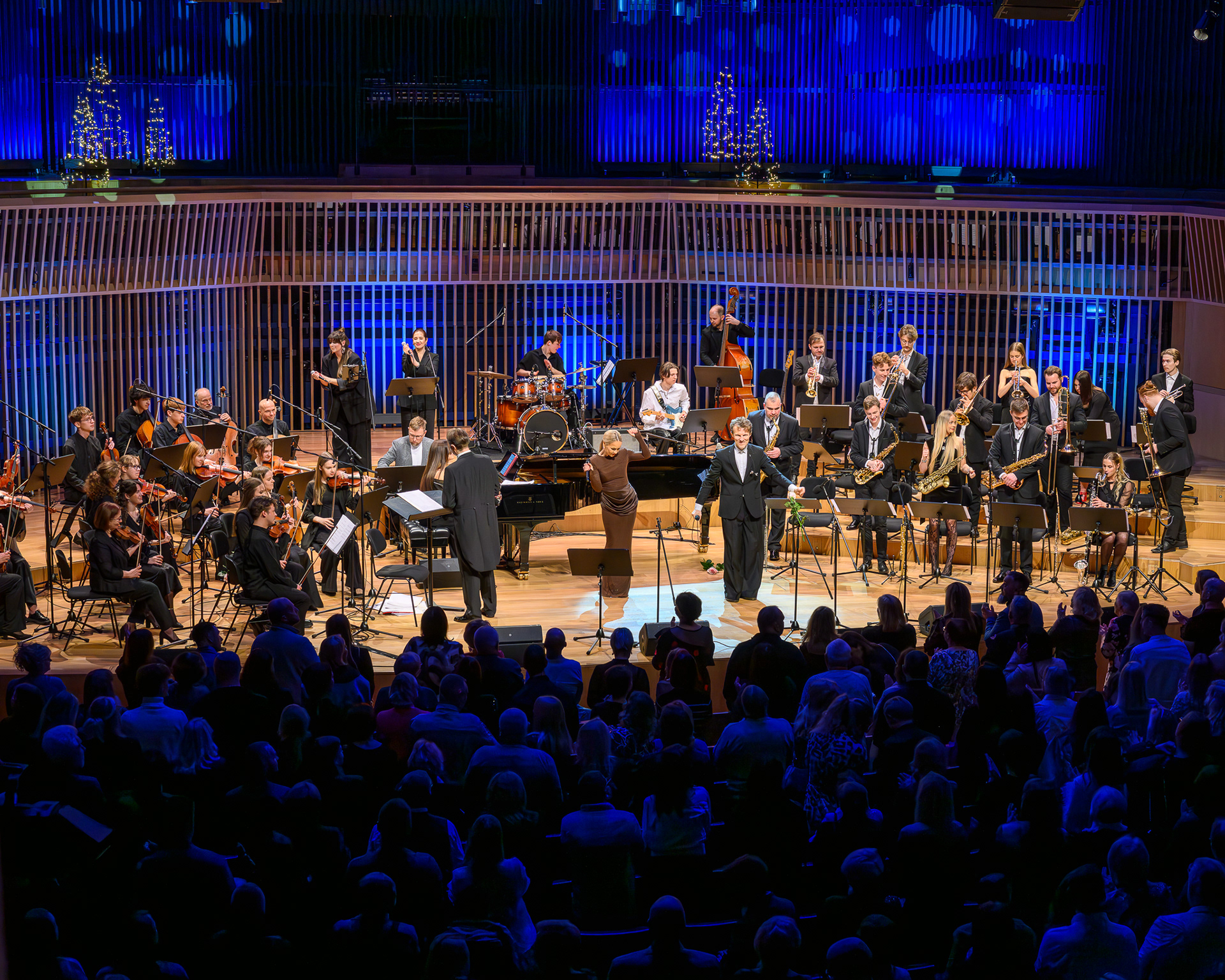 Ieskats koncertā “Nākat iekšā, Ziemassvētki!” koncertzālē “Latvija”. Piedalījās: Aija Andrejeva, Jānis Aišpurs, Ventspils bigbends, Ventspils kamerorķestris. Mākslinieciskais vadītājs Renārs Lācis, diriģents Aigars Meri.