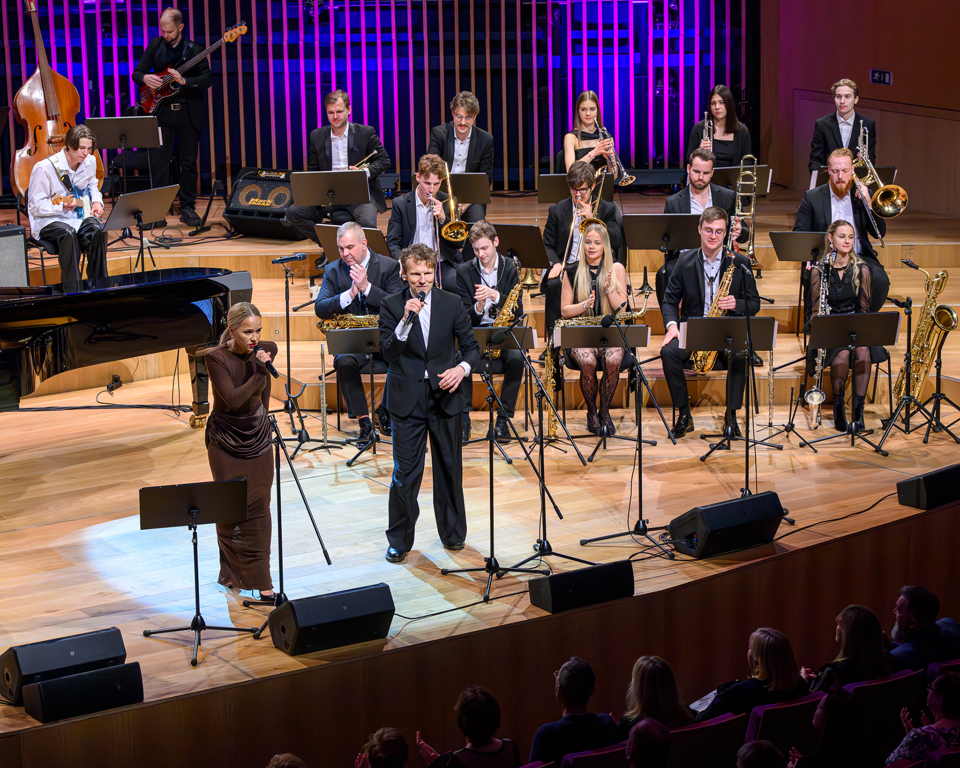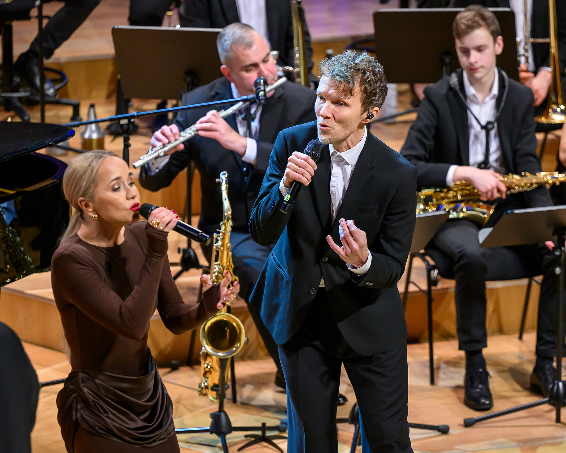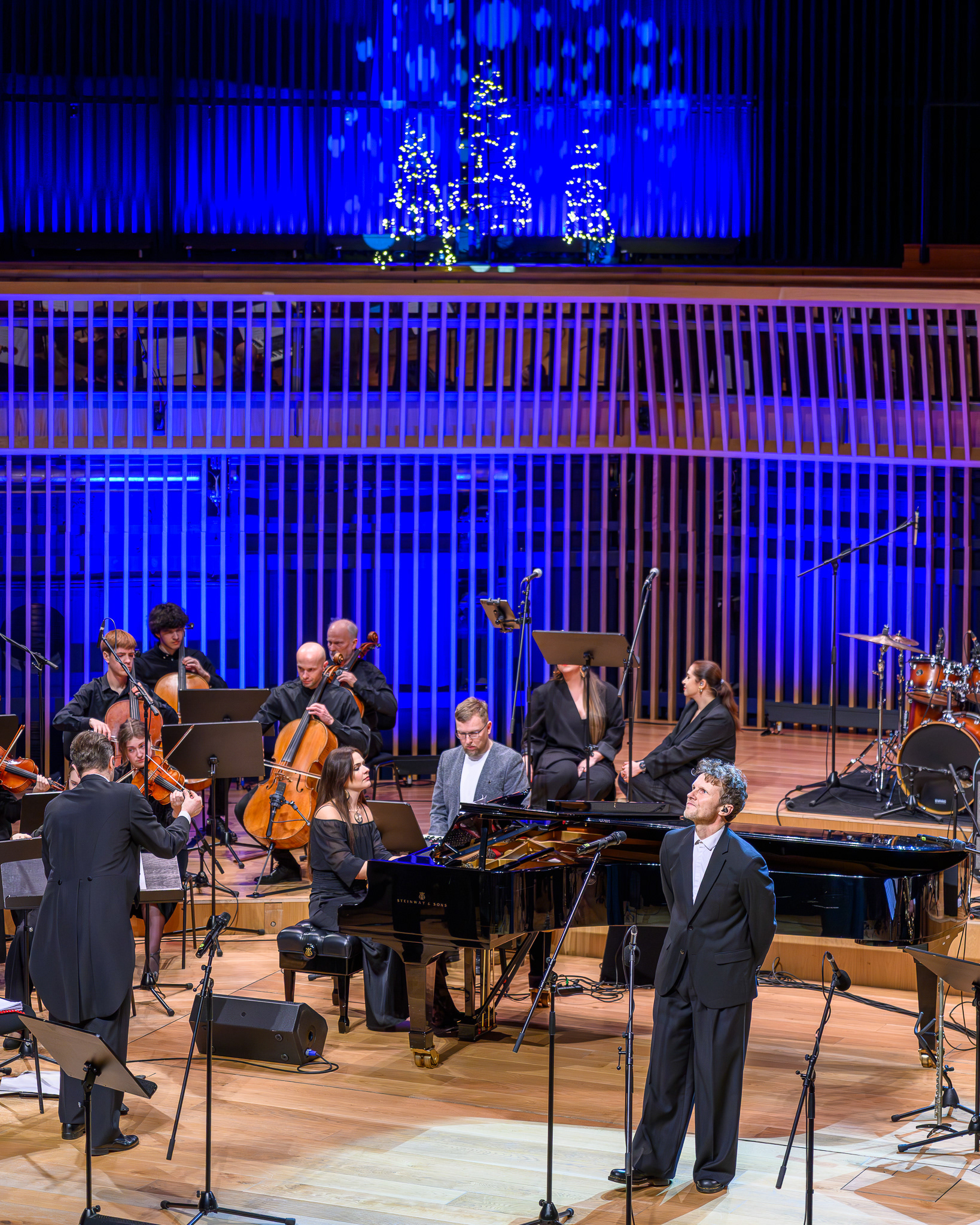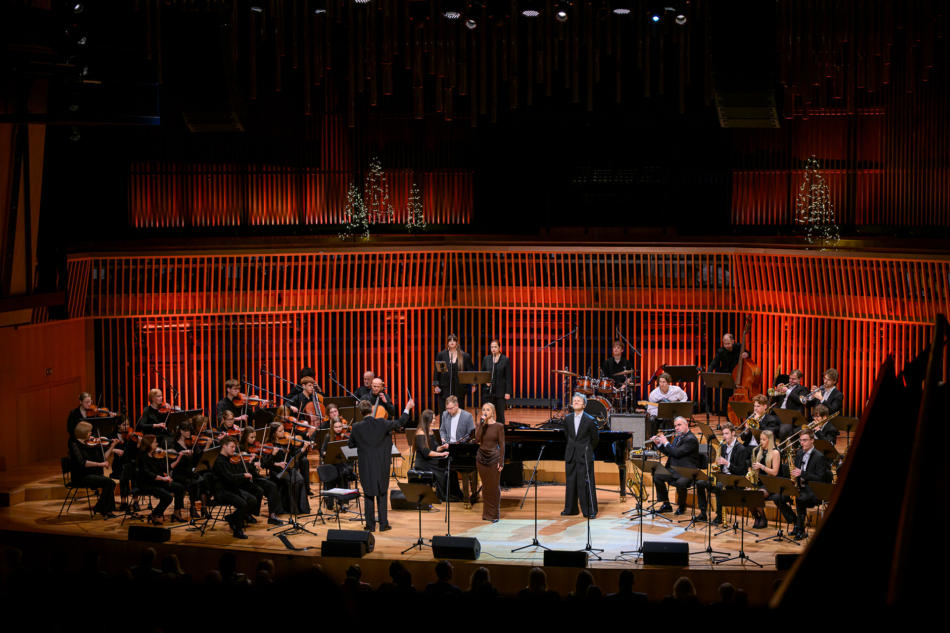 Ieskats koncertā “Nākat iekšā, Ziemassvētki!” koncertzālē “Latvija”. Piedalījās: Aija Andrejeva, Jānis Aišpurs, Ventspils bigbends, Ventspils kamerorķestris. Mākslinieciskais vadītājs Renārs Lācis, diriģents Aigars Meri.