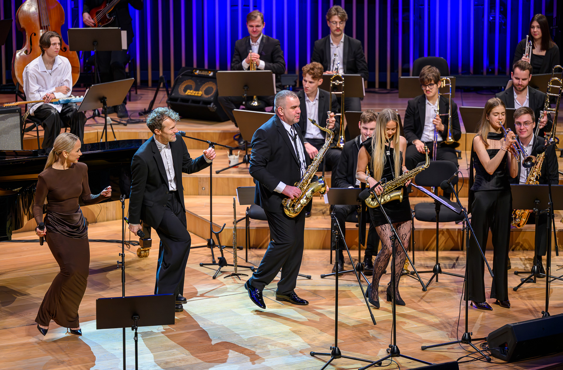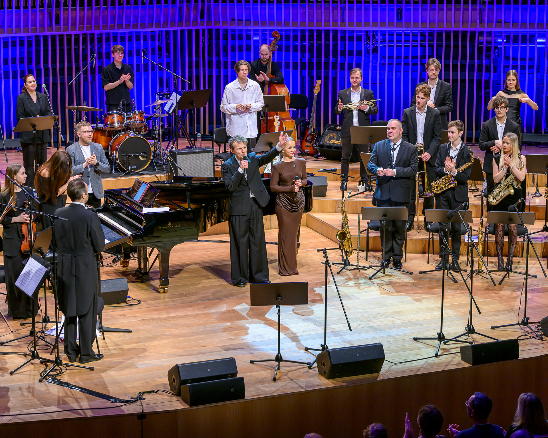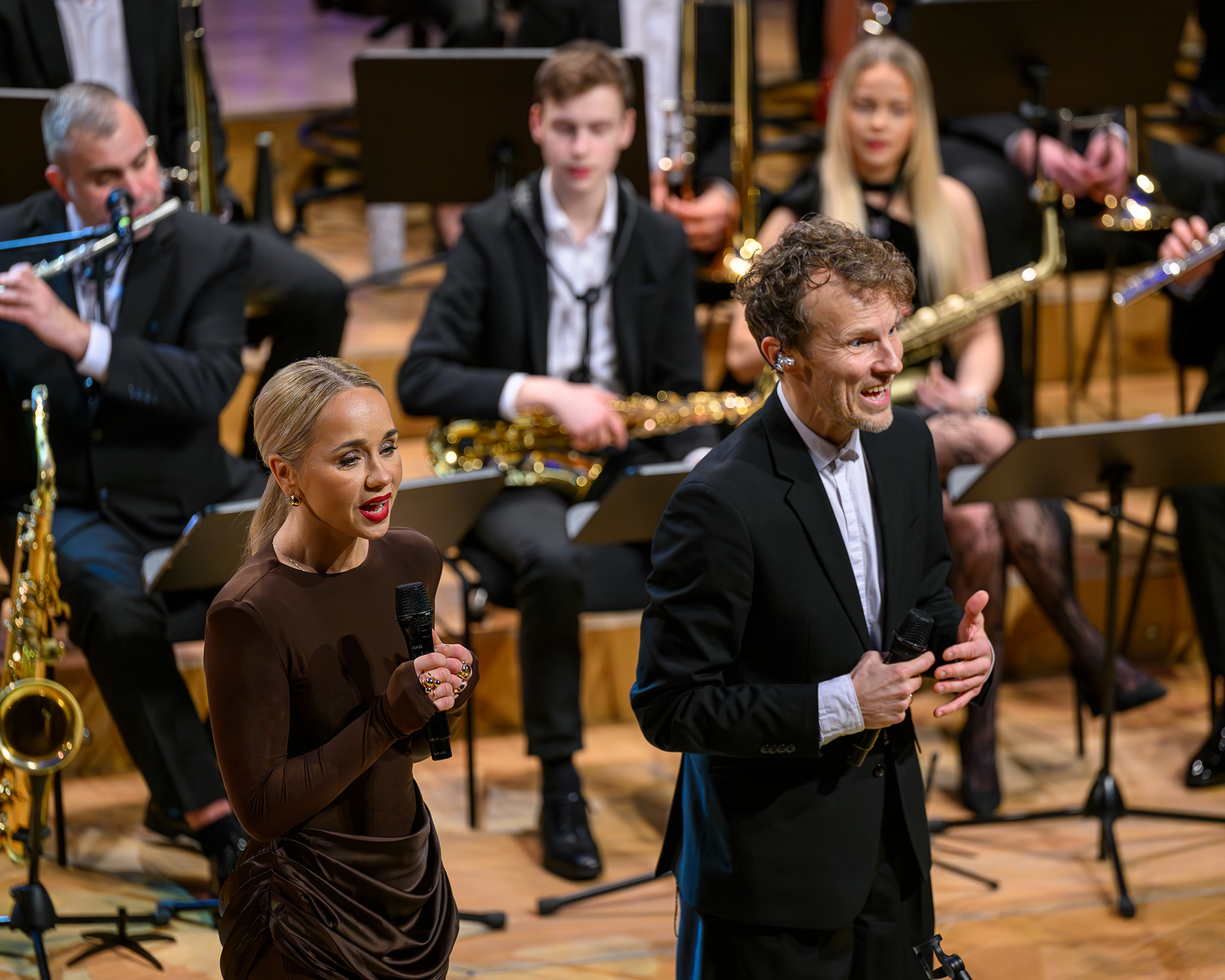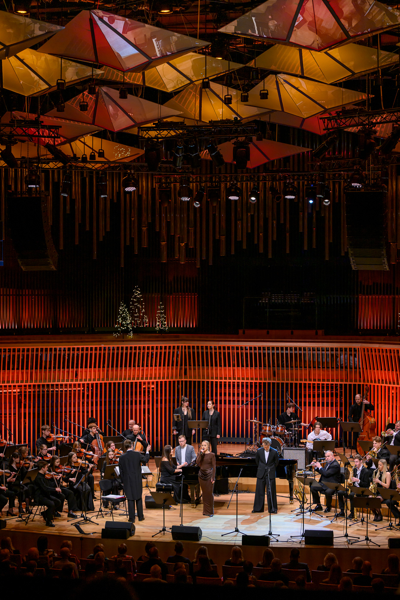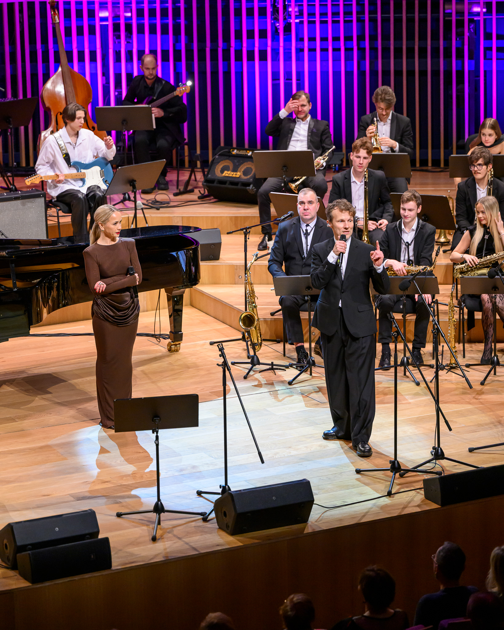 Ieskats koncertā “Nākat iekšā, Ziemassvētki!” koncertzālē “Latvija”. Piedalījās: Aija Andrejeva, Jānis Aišpurs, Ventspils bigbends, Ventspils kamerorķestris. Mākslinieciskais vadītājs Renārs Lācis, diriģents Aigars Meri.