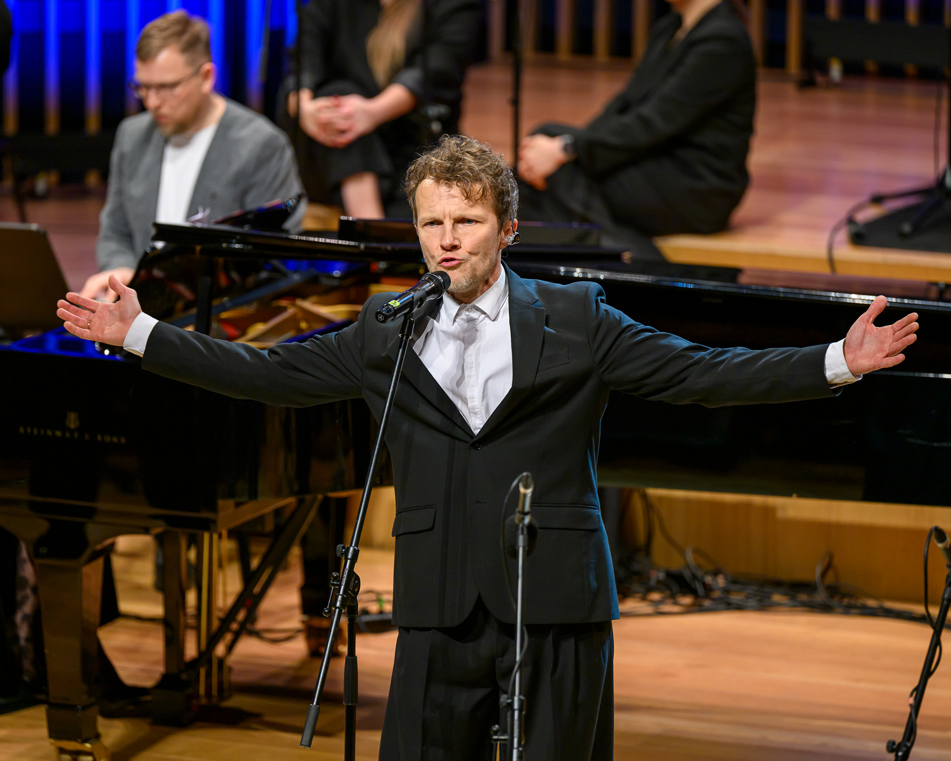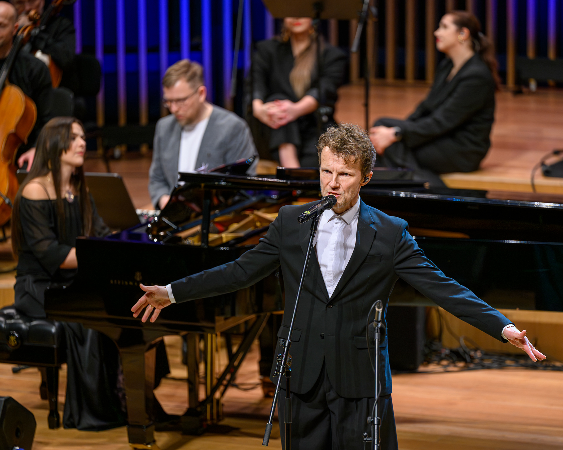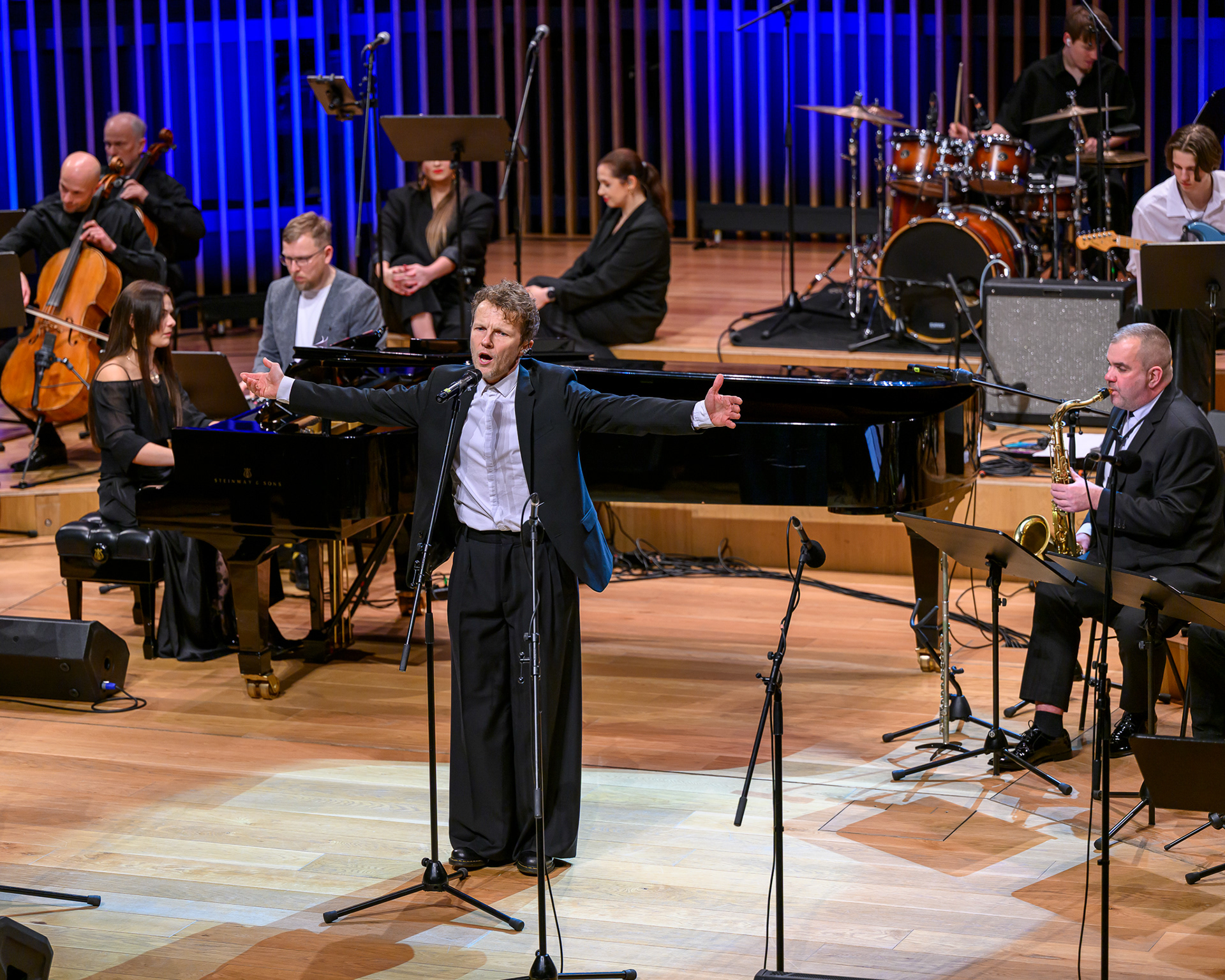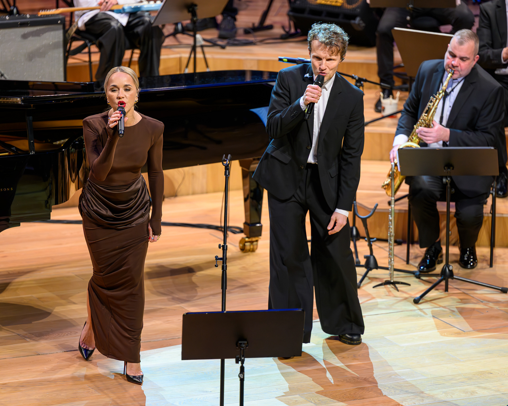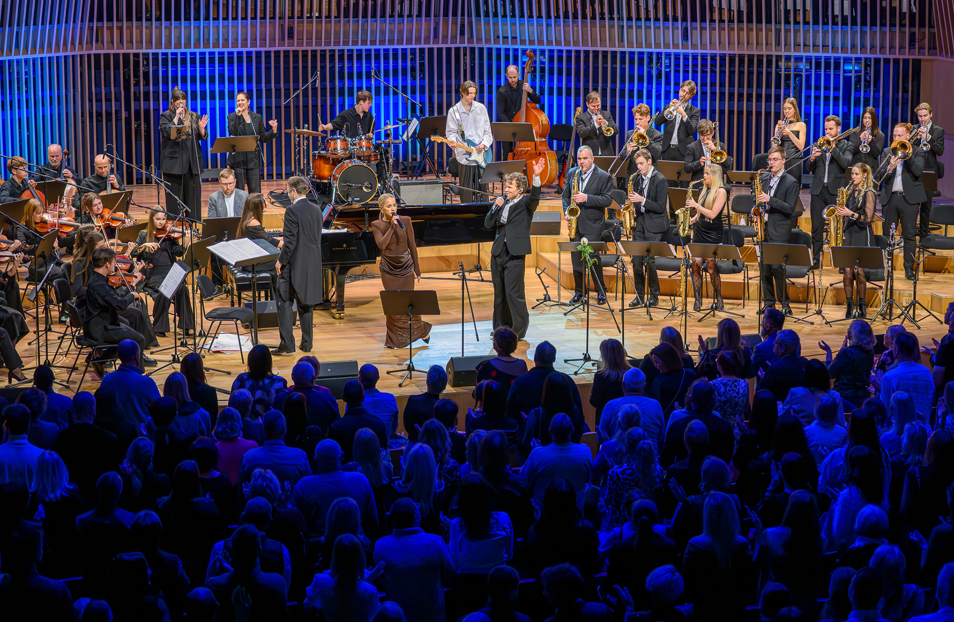 Ieskats koncertā “Nākat iekšā, Ziemassvētki!” koncertzālē “Latvija”. Piedalījās: Aija Andrejeva, Jānis Aišpurs, Ventspils bigbends, Ventspils kamerorķestris. Mākslinieciskais vadītājs Renārs Lācis, diriģents Aigars Meri.